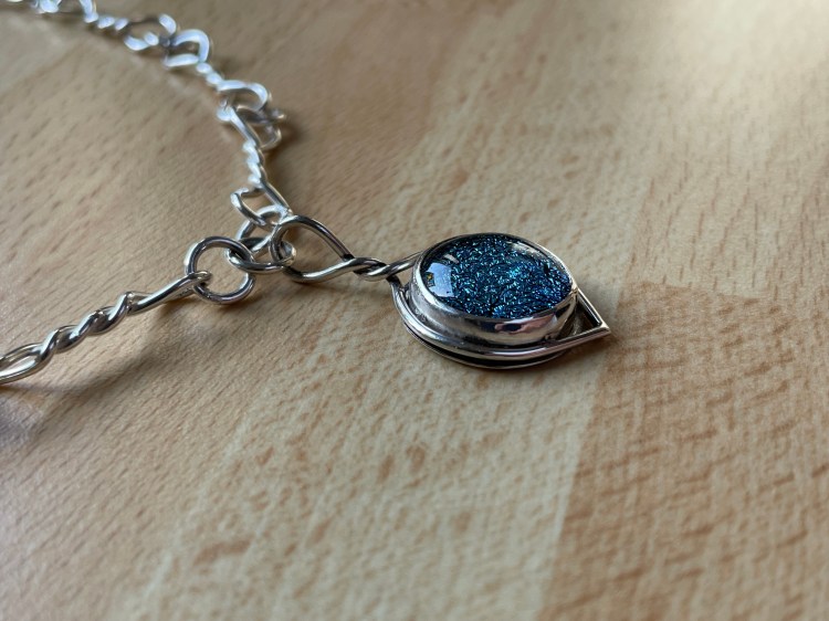 Pendant using fused glass cabochon with hand made sterling silver necklace