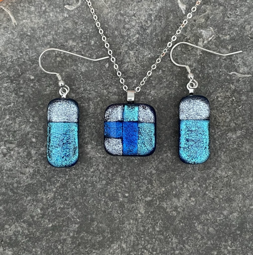 Cuff links from dichroic fused glass